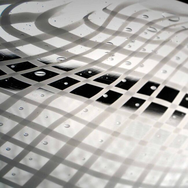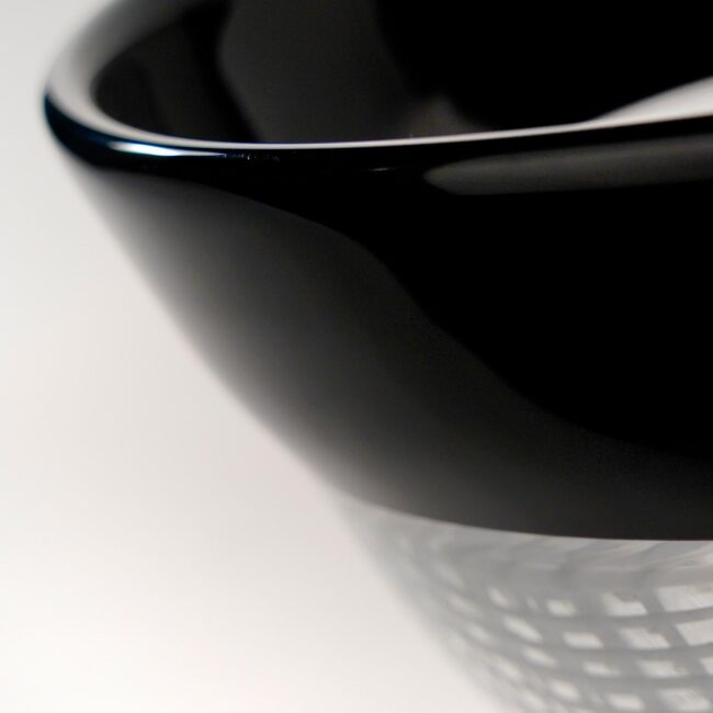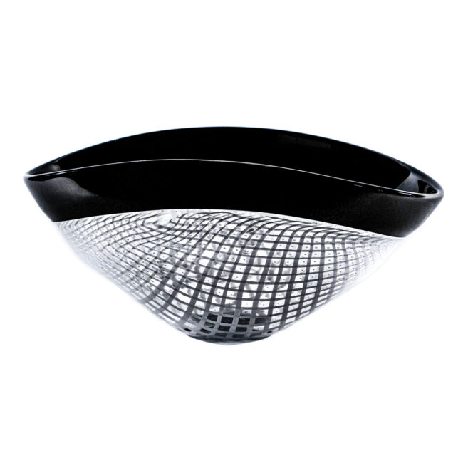 Centrotavola in bianco e nero. Lavorazione a canne bianche in pasta vitrea eseguito interamente a mano dal Art Team. Firma incisa a punta di diamante.