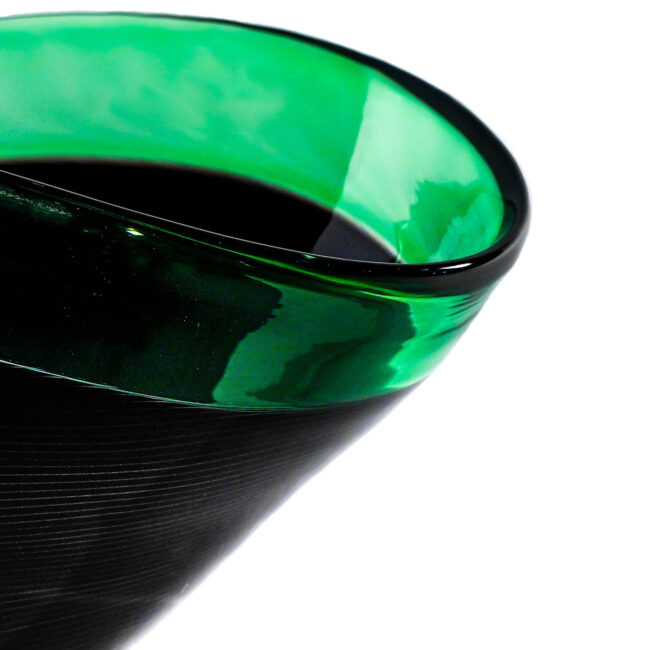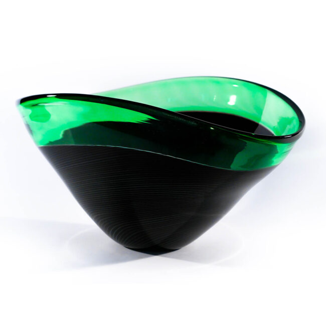 Centrotavola molato in vetro artistico di Murano. Lavorazione incalmo in pasta vitrea. Opera primaria eseguita interamente a mano dal Art Team. Firma incisa a punta di diamante.