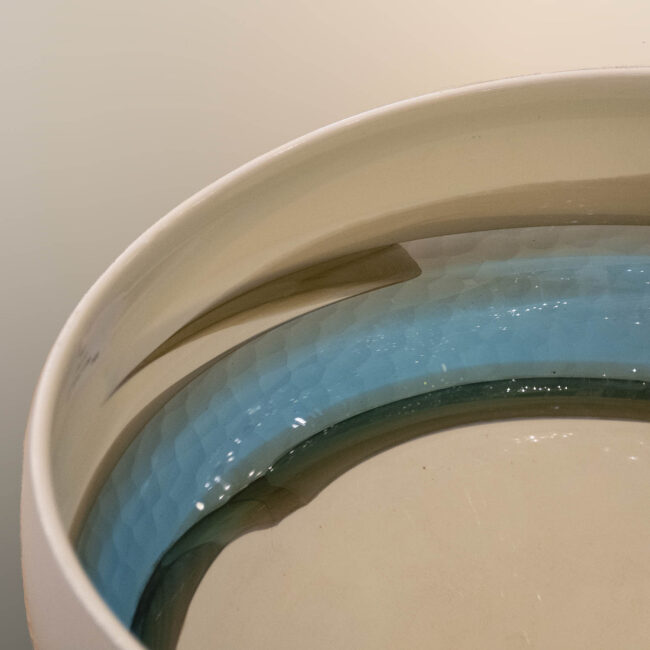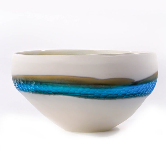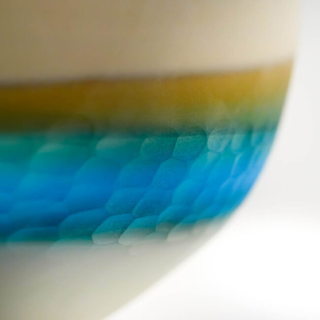 Centrotavola molato in vetro artistico di Murano. Lavorazione incalmo in pasta vitrea. Opera eseguita interamente a mano dal Art Team. Firma incisa a punta di diamante .
