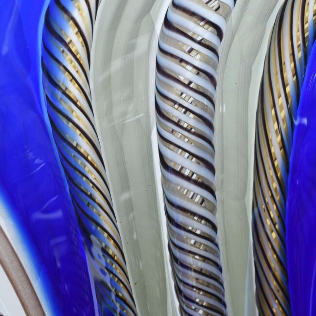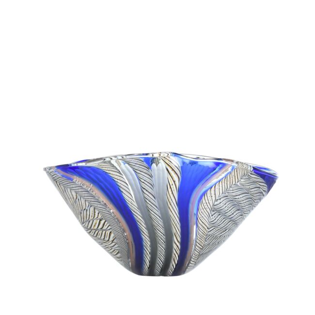 Coppa eseguita interamente a mano su disegno Signoretti. Lavorazione con canne in filigrana blu e venturina.