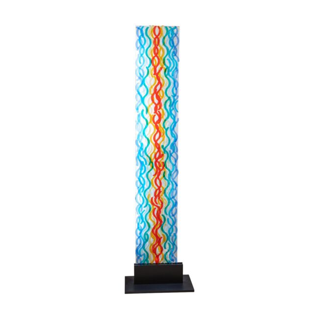 Stelo in stile moderno illuminato dietro la base realizzato a mano con canne in vetro colorato.