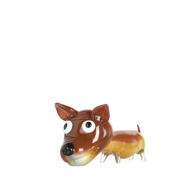 Figura cane bassotto realizzato interamente a mano su disegno Signoretti. Lavorazione a massello.