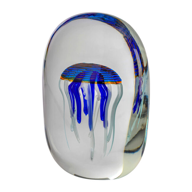 Sasso in vetro cristallo con Medusa sommersa. Opera d’arte autentica eseguita a mano dal Maestro Alex Signoretti. Firma incisa a punta di diamante.