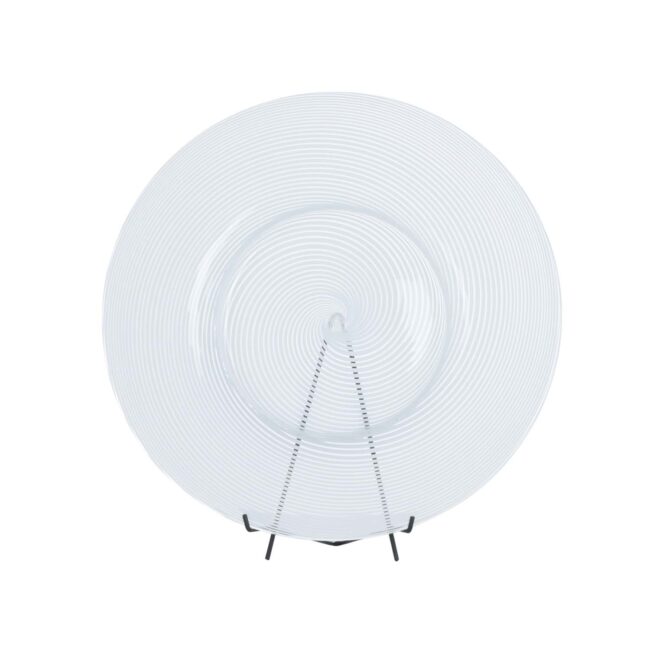 Piatto eseguito con la tecnica della canna in filigrana bianca. Su disegno Signoretti ed eseguito interamente a mano.