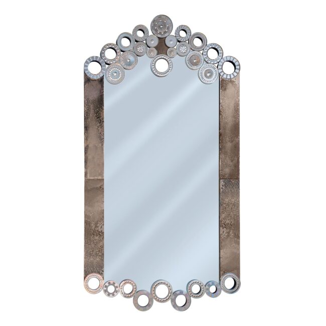 Carved solid wood structure. Central body in silver glass, frames in colored crystal glass with cut circles. Hand-made by our Glass Masters.