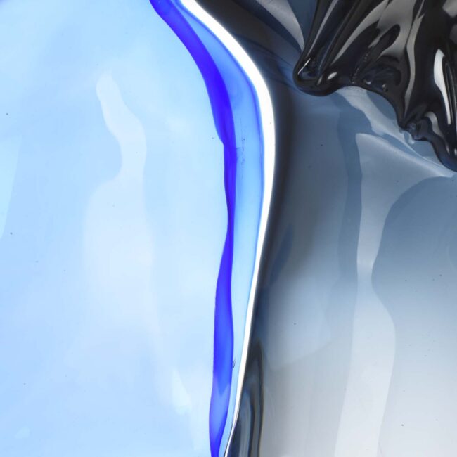 Solid steel-colored eagle symbol totem with blue decoration and round black base.Entirely handmade on Signoretti design .