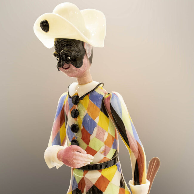 Murano glass “ARLECCHINO” sculpture. The great skill of our Art Team is the modeling technique entirely handmade by the Art Team. Signature engraved with a diamond tip.